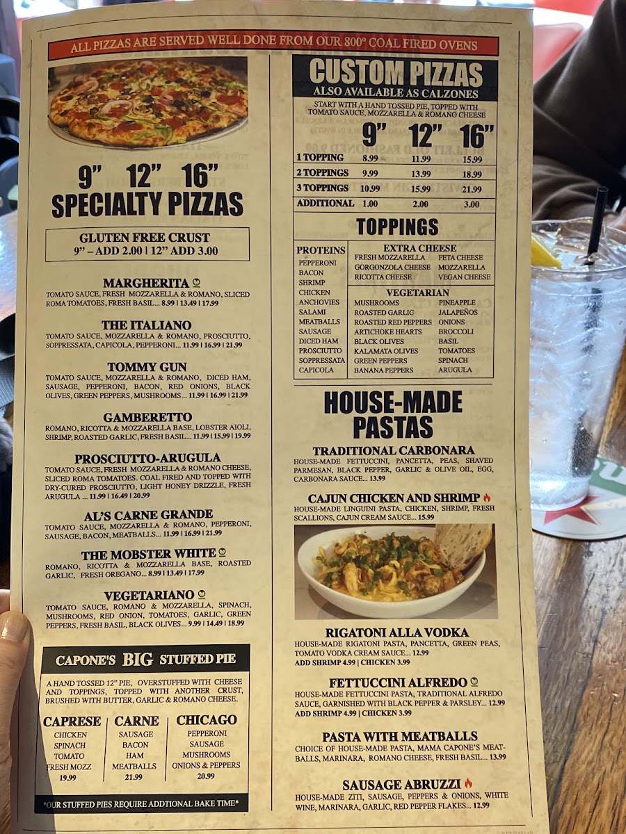 Welcome to Capone's Coal Fired Pizza, a vibrant eatery located at 2225 First St, Fort Myers, FL, where the soul of Italian cuisine comes alive! This restaurant beautifully blends a gangster-themed ambiance with mouthwatering dishes that make you feel right at home.
